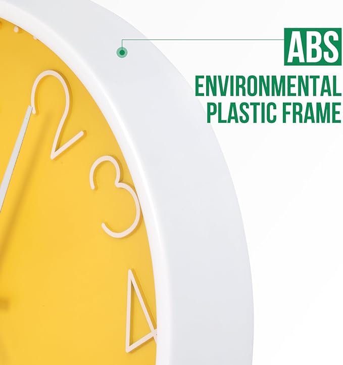 Wall Clock Non-Ticking Silent Modern Simple Style Round Decor Clock Stereoscopic Dial Quartz Wall Clocks for Home/Office/School/Living Room/Bedroom/Kitchen (Yellow, 8inch)
