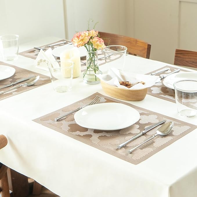 - Durable & High-Quality Placemats: Crafted from premium 70% PVC and 30% Polyester, these placemats for dining table are precision-woven for exceptional durability. Designed to withstand daily use, they are heat-resistant, water and oil proof, long-lasting, non-slip, and easy to clean, making them a practical and stylish addition to any dining setup.