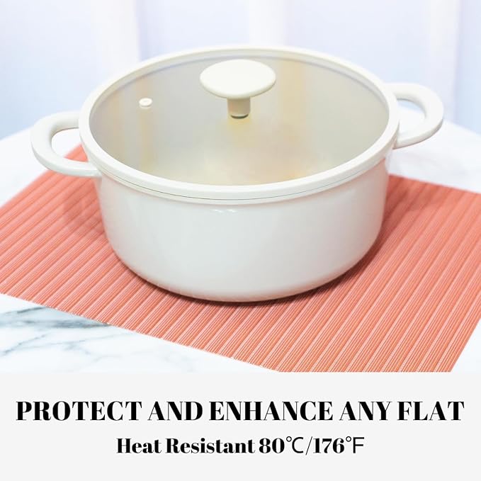- Protect Your Table: These heat-resistant placemats can withstand temperatures up to 176°F (80°C), providing reliable protection against hot dishes, spills, stains, and scratches. Keep your table and furniture looking pristine while enjoying worry-free meals.
