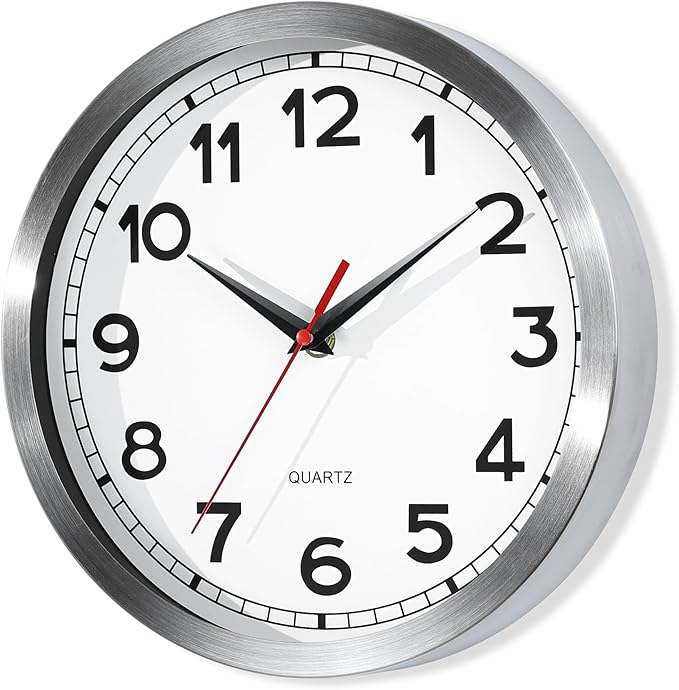 - 🕗 Modern & Decorative Design – Brushed metal frame with a sleek finish gives this modern wall clock a clean, timeless appeal. A stylish decorative wall clock that complements any interior.