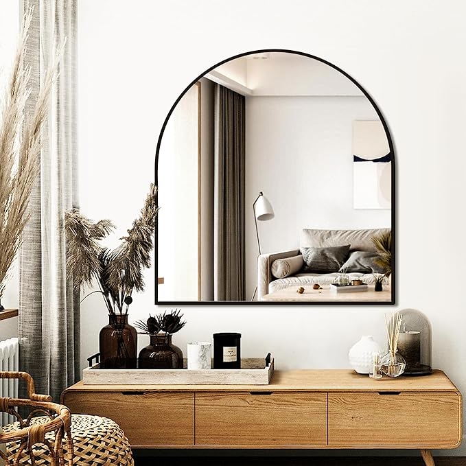 - Sturdy Frame and Arched Design:The mirror is made of high-quality aluminum alloy frame,which is lightweight and rust-resistant.The arched design adds a stylish and modern feel.With special anti-corrosion treatment,it can withstand various climate conditions and is durable.