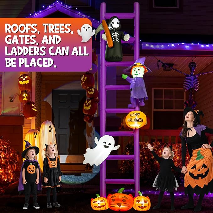 Halloween Inflatables, 10.5ft Purple Ladders Decorations, Blow Up Yard Inflatables, Pumpkin&Ghost&Witch&Skeleton, Extra Large Decorations with Built-in LEDs, for Holiday Outdoor Rooof Trees