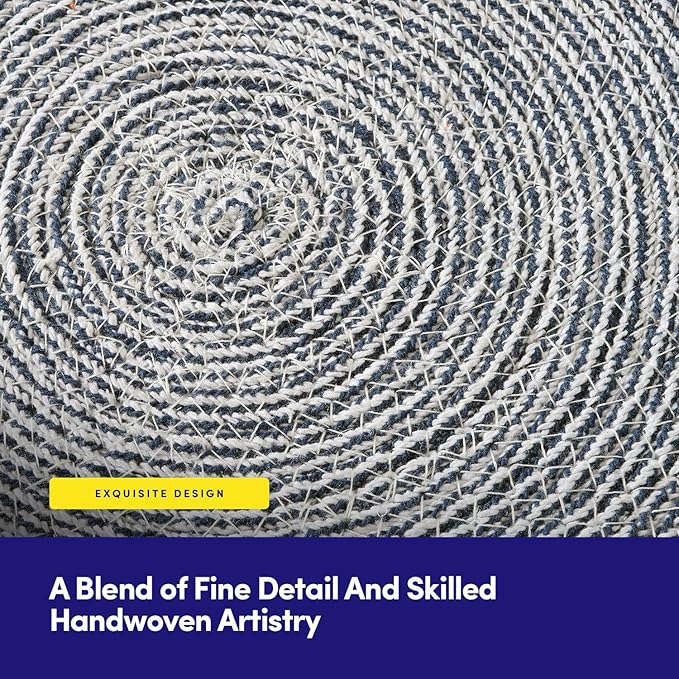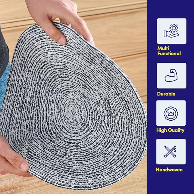 Round Placemats Set of 4-100% Cotton Two-Tone Placemat for Dining Table - Woven Braided Table Setting Place Mat - Washable Table Decor for Kitchen, Farmhouse, Rustic, Everyday Use, Navy
