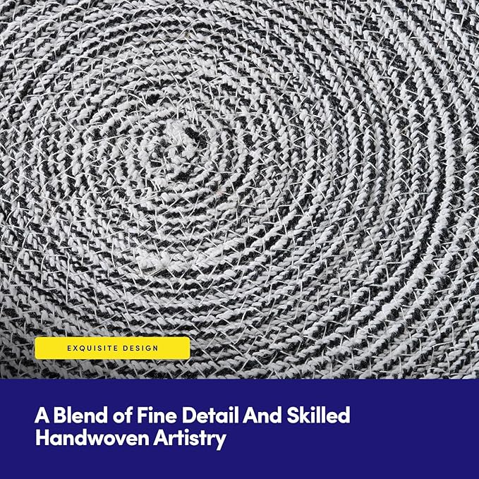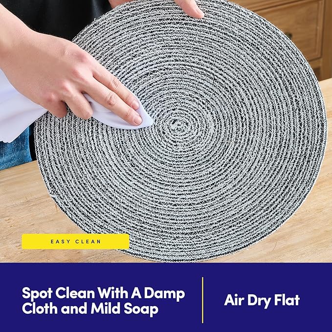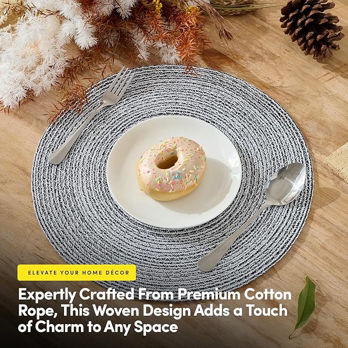 Round Placemats Set of 4-100% Cotton Two-Tone Placemat for Dining Table - Woven Braided Table Setting Place Mat - Washable Table Decor for Kitchen, Farmhouse, Rustic, Everyday Use, Black
