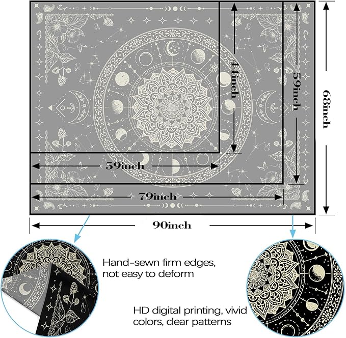 - Unique Mandala Moon Design: This Lunerfex tapestry features an intricate mandala design combined with cosmic elements, creating a mysterious and artistic touch for your bedroom or living room.