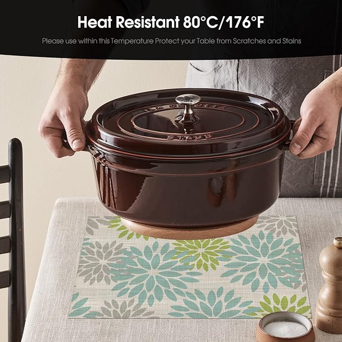 - Protect Your Table:The wipeable placemat Heat-resistant up to 176°F (80°C), perfect to protect your dining table from food stains and burns.