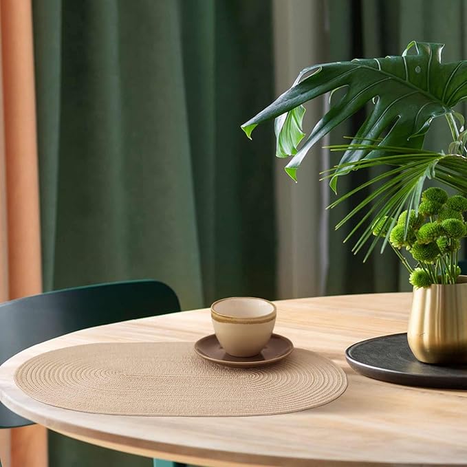 Noctiflorous Oval Braided Placemats Set of 4 Woven 12x18 Inch Non Slip Washable Heat Resistant Place Mats Round Tablemats for Dining Kitchen Party Daily Table Decor Dinner Mats (15 Coffee Brown, 4)