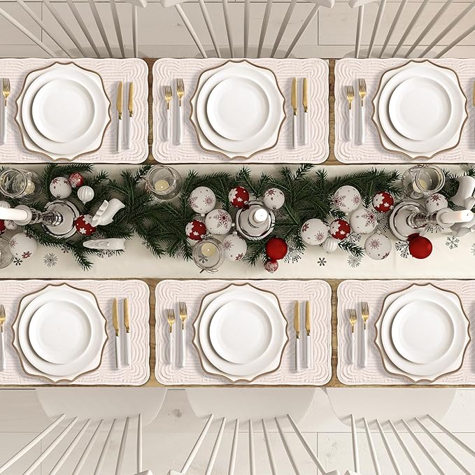 - WILDELY USED:Rectangular placemats for any theme (indoor and outdoor) Great for dining tables, home kitchens, restaurants, potlucks, birthday parties, offices, coffee shops, outdoor barbecues. Our colorfast resistant quilted placemats allow your dinnerware to stand out.