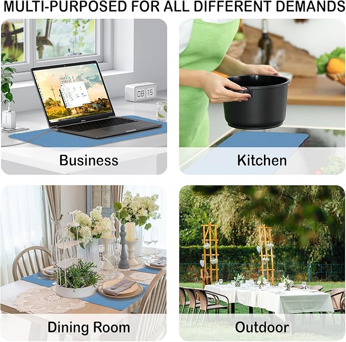 - WILDELY USED:Rectangular placemats for any theme (indoor and outdoor) Great for dining tables, home kitchens, restaurants, potlucks, birthday parties, offices, coffee shops, outdoor barbecues. Our colorfast resistant quilted placemats allow your dinnerware to stand out.