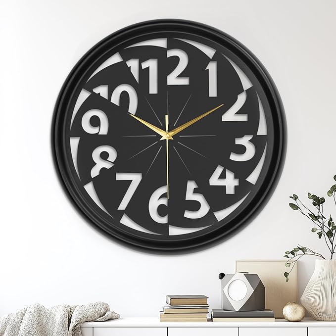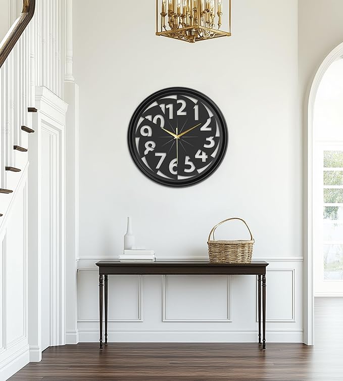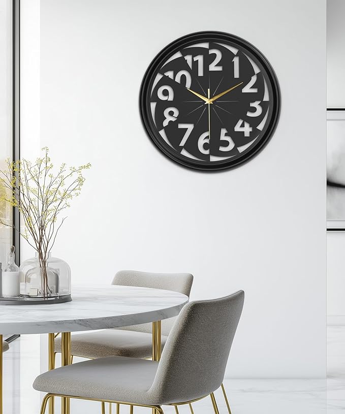 - 【Modern Hollow-Out Design】This decorative wall clock features a bold cut-out dial and minimalist style, adding depth to any room. A fresh take on wall clocks for living room decor with modern visual appeal.