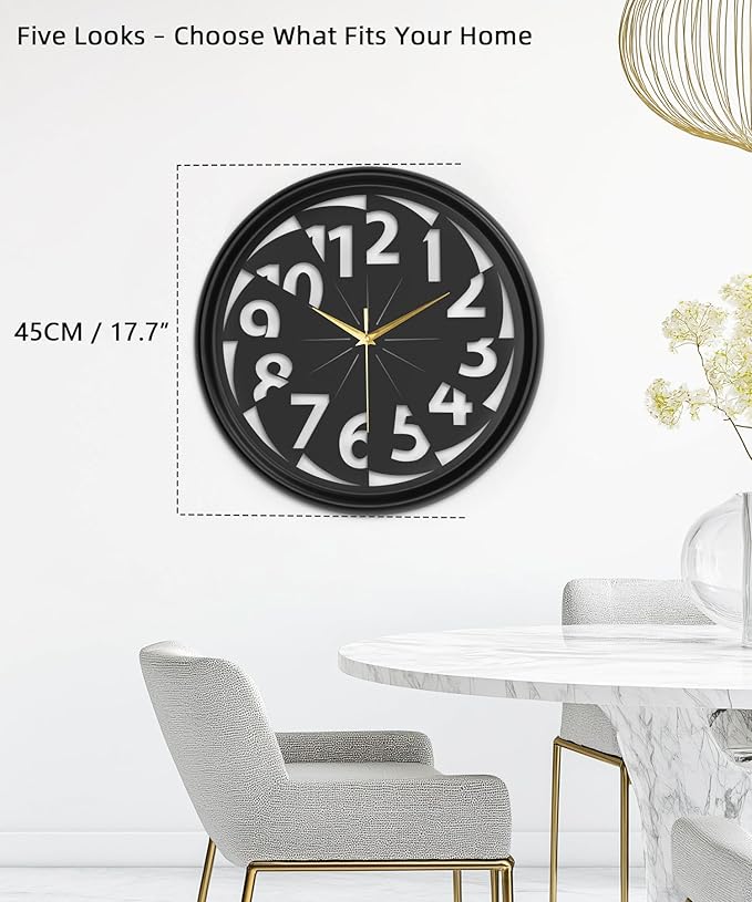 - 【Large 17.7” Size, Striking Look】A perfect large wall clock for making a visual impact without overwhelming your space. Great for clocks for living room, kitchens, hallways, or entryways.