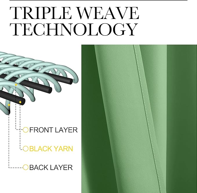 - AMAZING MATERIAL: Super heavy and soft Blackout Curtain Panels are very upmarket. Besides, 85%-99% light blocking, thermal insulated, soundproof, Fade-resistant, energy-efficient. Thread trimmed and wrinkle-free, both sides are the same color.