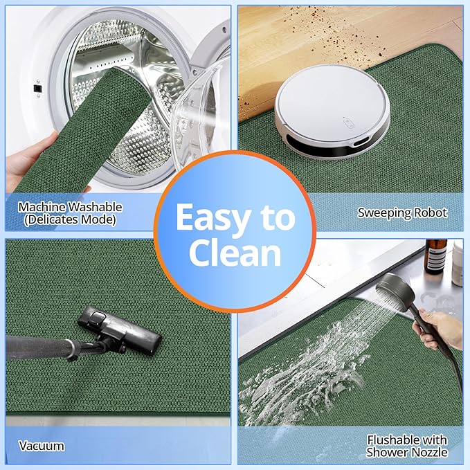 - [Stain Resistant & Easy to Clean] Different from high pile chenille bath mats that easily trap dirt, our bath rugs for bathroom is stain resistant and more easier to clean. Machine washable and won't deform, fade or crack after washing
