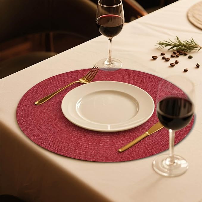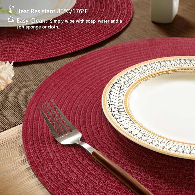 - Occasions: Use FunWheat round placemats for kitchen, restaurants, hotel, or business office, Christmas, birthdays, Thanksgiving family gatherings, housewarming, holiday, parties, home, weddings and more. Perfect for daily use indoor or outdoor