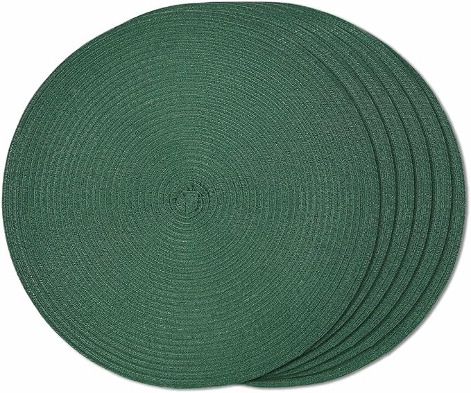 FunWheat Round Braided Placemats Set of 6 Place mats for Dining Tables Woven Heat Resistant Table Mats 15 inch (Dark Green)