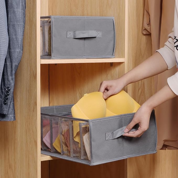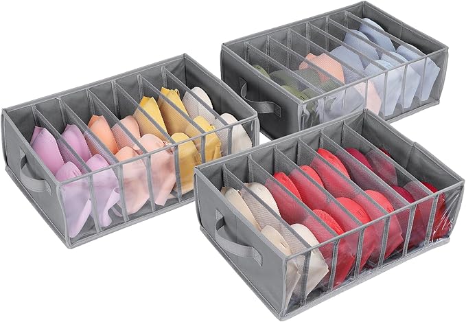 Zilink Upgraded Underwear Drawer Organizer with Support Board, Clear Drawer, 7 Grids Divider, Sock Organizer for Closet, Nursery, Baby Clothes, Bra, Sock, Tie - 3 Pack