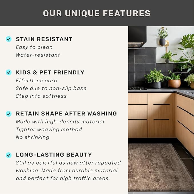 - Non-Slip & Safe: Enjoy safety and stability with the rug’s strong non slip rubber backing, designed to stay firmly in place and prevent accidents