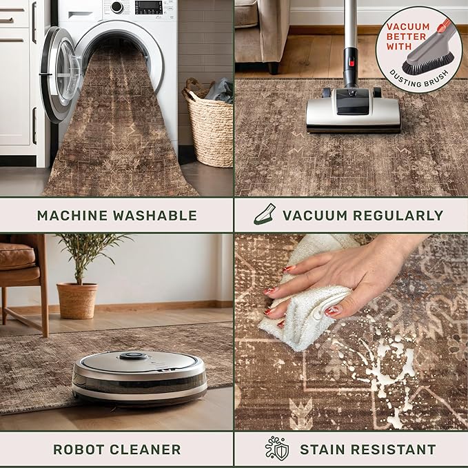 - Machine Washable: Keep your rug fresh with ease! Simply vacuum regularly, or for a deeper clean, toss it in the machine. Ideal as rug for dining room table, area rugs 9x12 living room and rugs for bedroom. Durable for everyday use