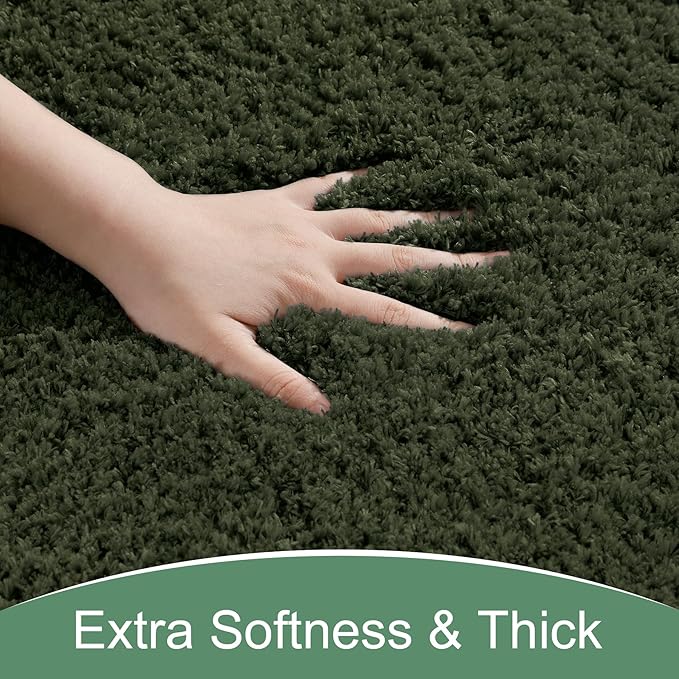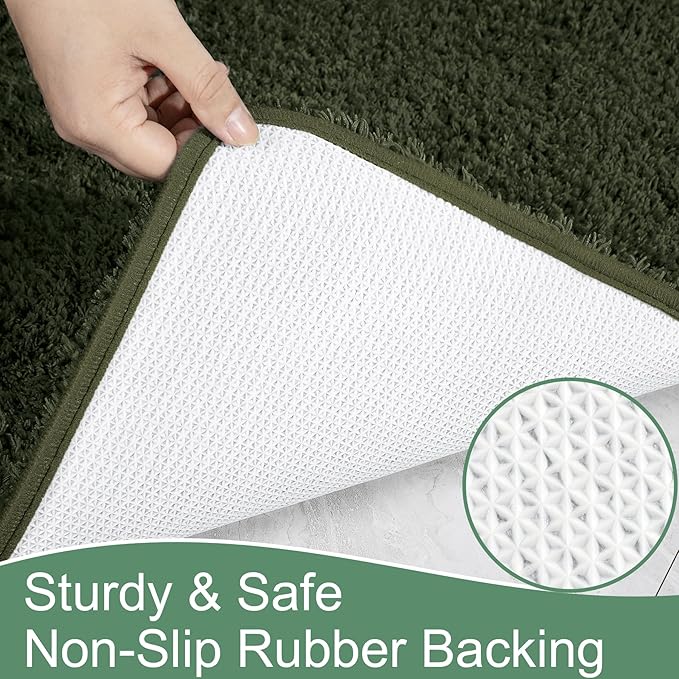 AROGAN Luxury Long Bathroom Runner Rug, 24x60 Inch Thick Soft and Absorbent Non Slip Bath Mat, Rubber Backing Quick Dry Rugs Carpets, Machine Washable Plush Mats for Shower Floor, Olive Green