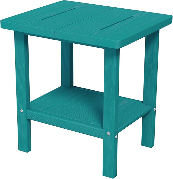 2-Tier Adirondack Square Outdoor Side Table, Pool Composite Patio Table, Weather Resistant End Table for Patio, Backyard, Pool, Easy Maintenance - Aruba