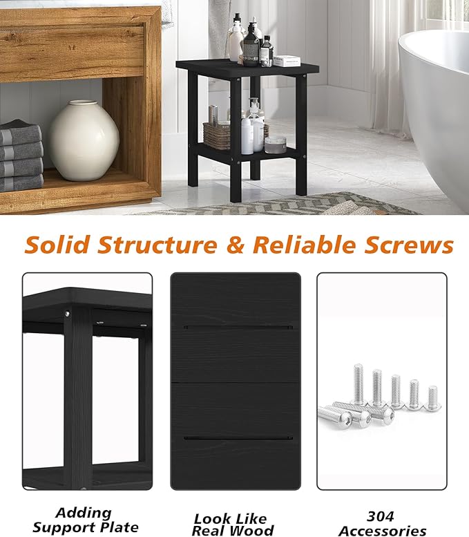 2-Tier Adirondack Square Outdoor Side Table, Pool Composite Patio Table, Weather Resistant End Table for Patio, Backyard, Pool, Easy Maintenance - Black