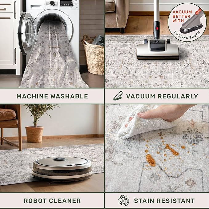 - Stylishly Versatile Design: Transform your living space with our rug's soft, light gray hues. Its eclectic design, featuring floral and boho patterns, infuses a touch of timeless charm and unique aesthetic, making it a perfect fit for any room in your home