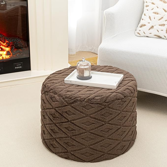 Round Pouf Ottoman Stuffed 20 x 20 x 14 Inches Boho Poof Foot Stool Home Decor Floor Pouffe Ottoman Foot Rest for Couch Sofa Bean Bag Chairs Living Room Bedroom (Dark Coffee)
