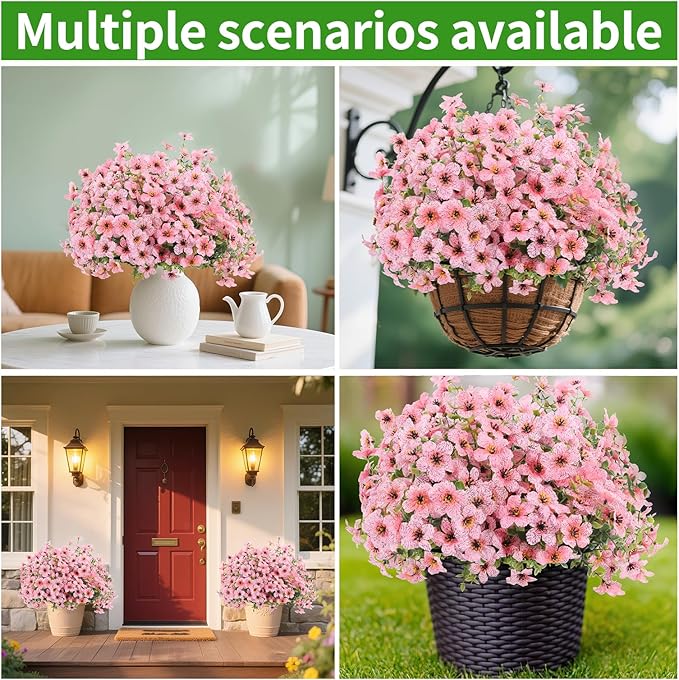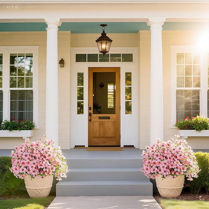 - 💐【Outdoor Artificial Plants】💐These aesthetically pleasing outdoor artificial plants are suitable for various areas of your home, including your porch, walkway, front yard, garden, living room, kitchen, bedroom, balcony, and more, adding a touch of natural beauty to your surroundings. Available in a variety of vibrant colors, these silk flowers require no watering and withstand harsh weather conditions without wilting.