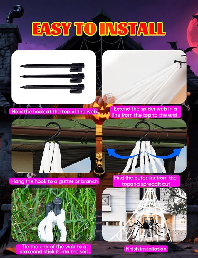 - 【Versatile Application】: Whether you're decorating your yard, lawn, or garden, the Halloween Spider Web Lights are the perfect choice. With their spooky design and captivating illumination, they create a hauntingly beautiful atmosphere. Transform your home into the