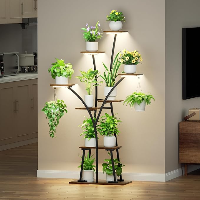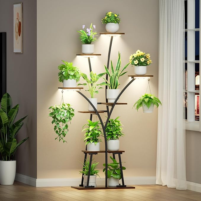 - 8 Tiered Large Plant Stand: With its unique tree-shaped design and 8 tiered shelves, this plant stand provides generous space for displaying everything from small succulents to tall indoor plants. Ideal for larger living areas, sunrooms, or open corners, its look adds a natural feel that enhances both your plants and your space.
