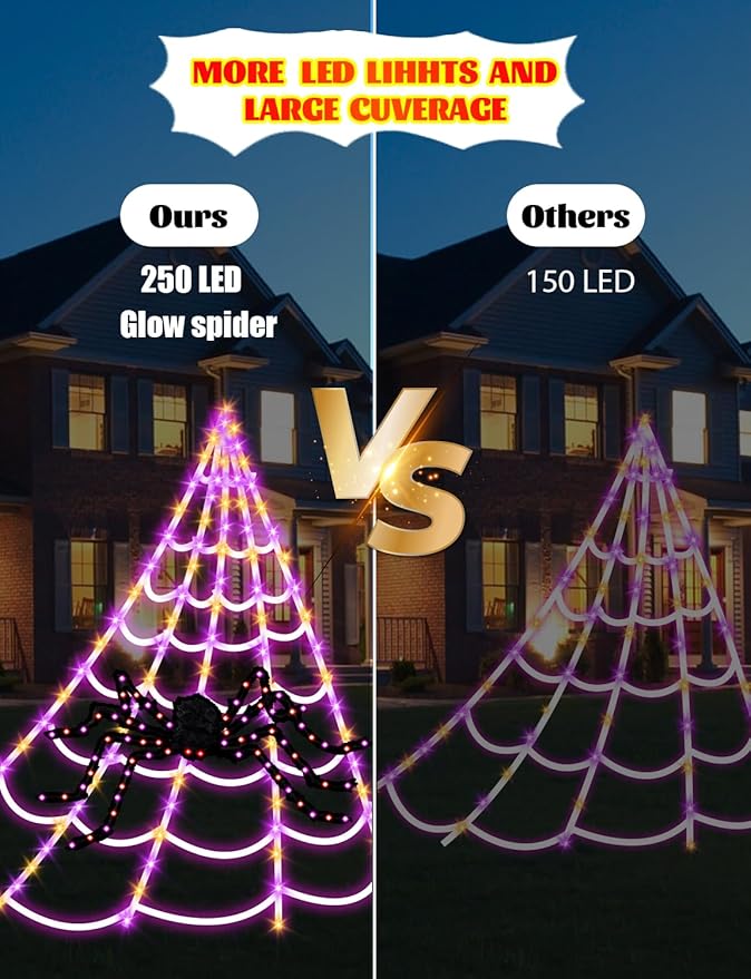- 【Versatile Application】: Whether you're decorating your yard, lawn, or garden, the Halloween Spider Web Lights are the perfect choice. With their spooky design and captivating illumination, they create a hauntingly beautiful atmosphere. Transform your home into the