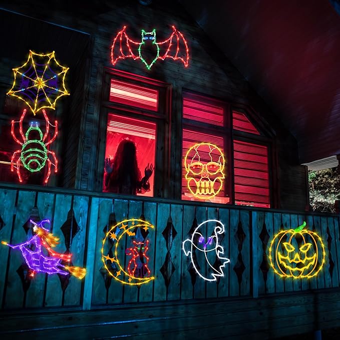 - WIDE APPLICATION- Perfect for indoor and outdoor decoration. It is a fantastic decor light, and also an ideal gift for family, friends, colleagues, or yourself. The Halloween silhouette lights decorations can be hung on the door head, porch, corridor, balcony, roof edge, bedroom, hallway, pub, bistro, cafe, restaurant, mall, or office