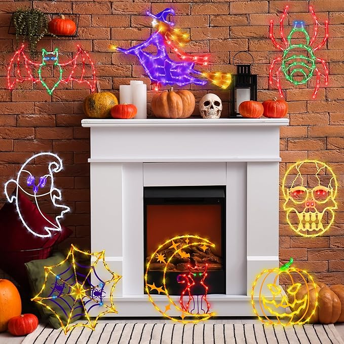 - EASY INSTALLATION- These lights use the characteristic ink-jet effect, which is more beautiful and intoxicating during the day as well as at night. These different themes of Cat on Moon & Witch & Pumpkin & Spider web Claus window lights are perfect for decorating and illuminating the home to make your house more beautiful and lovely