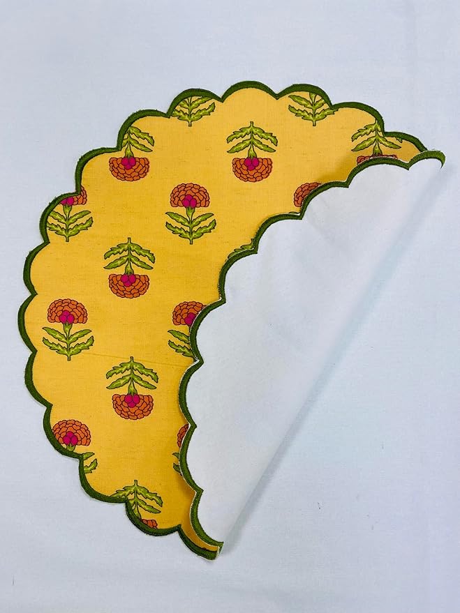 Ridhi Pestal Orange Bo-ho Round Place Mat Double Layer Floral Cotton Washable Placemats 15" Round Embroidery Block Print Table Mat Pack of 4-15 Inch Round