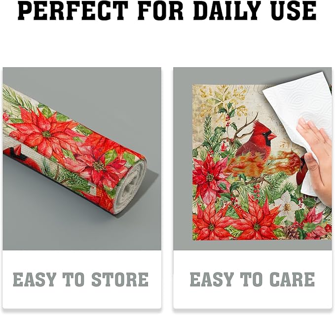 - ✲【DURABLE MATERIAL】The Xmas red bird placemats made of high quality natural linen fabric, foldable, durable and wrinkle-proof,wear resistant, for everyday use,improve your life quality.